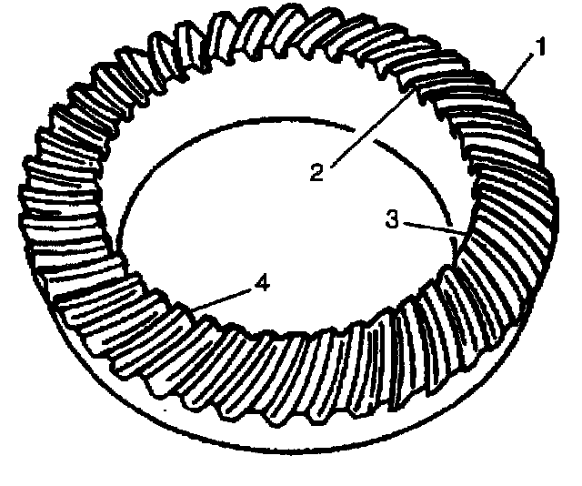 ^ The end of the tooth nearest center of the ring gear is the TOE end (2).