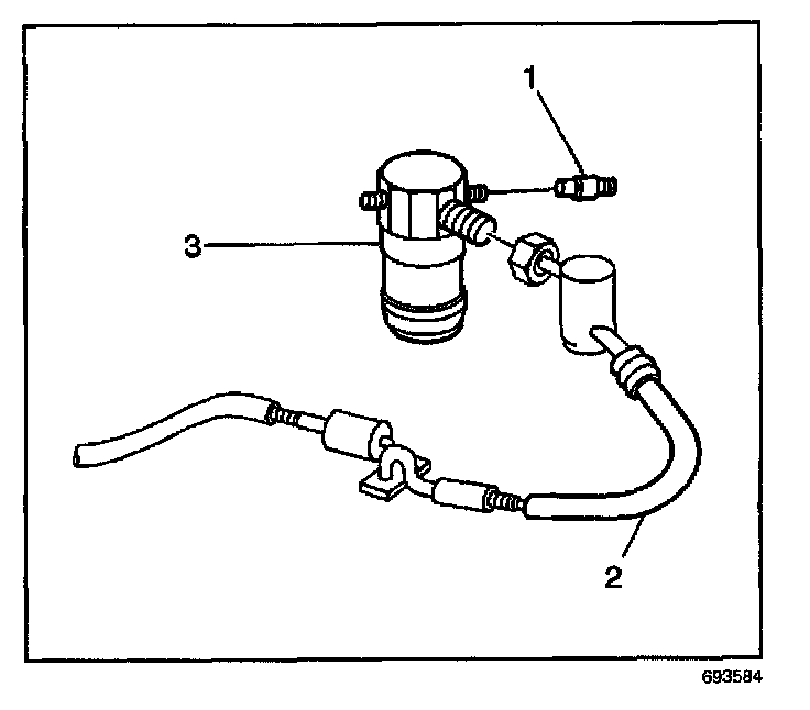 2. Remove the A/C low pressure switch (2) from the accumulator (3).