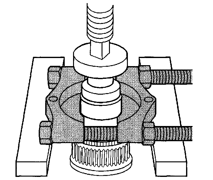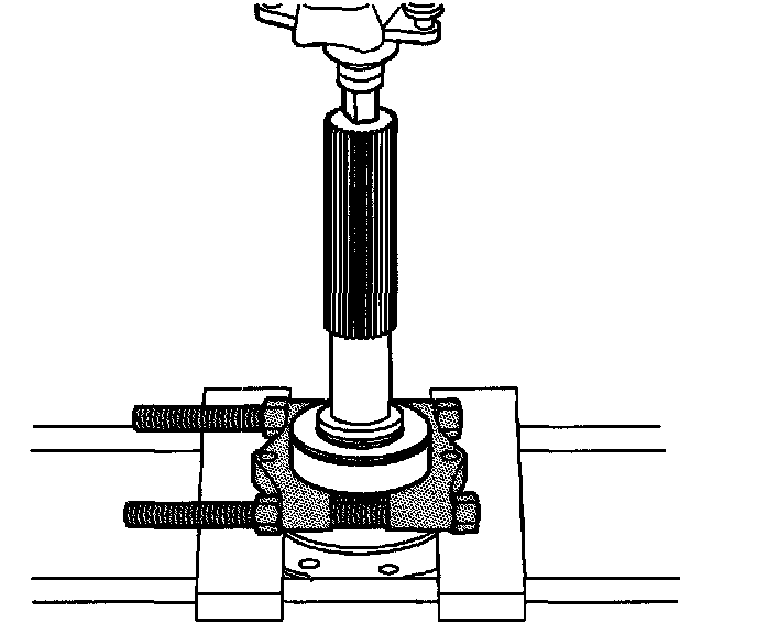 Using a wrench on the forcing screw, remove the rear output shaft bushing.