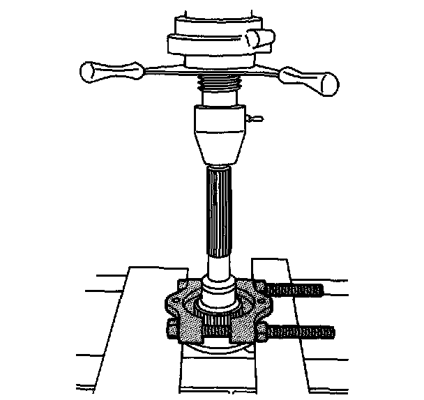 25. Using the flat side of the J 22912-01 and a press, remove the rear output shaft bearing.