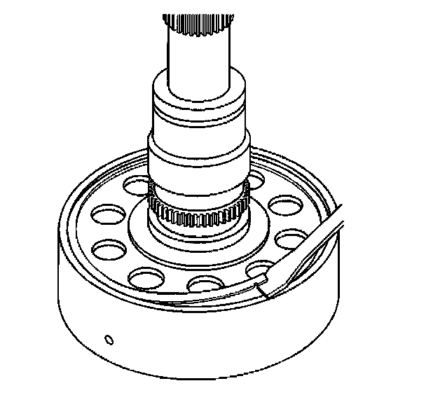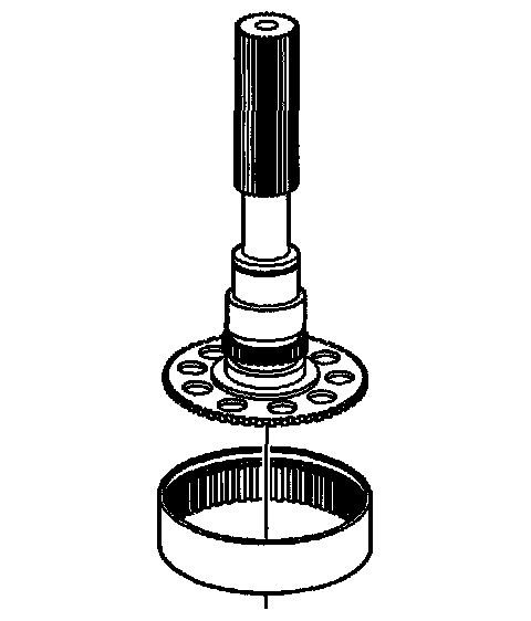 35. Remove the planetary carrier assembly. Tap on the end of the mainshaft with a soft-face hammer while lifting off the planetary carrier. A spring style retaining ring holds the planetary carrier to the mainshaft.