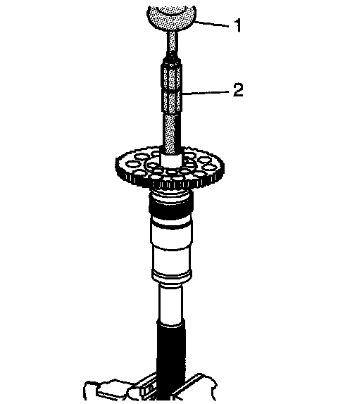 34. Using the J 2619-01 (1) and the J 45548 (2), remove the mainshaft rear bearing.
