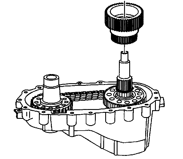 23. Remove the rear output shaft assembly. Hold the planetary carrier in place to prevent removing it with the rear output shaft.