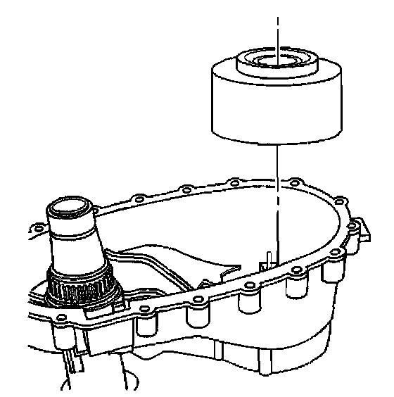 54. Using a press and the J 22912-01, remove the front output shaft rear bearing race.