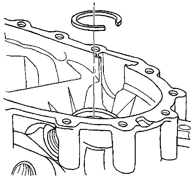 28. Remove the oil pump retaining ring.