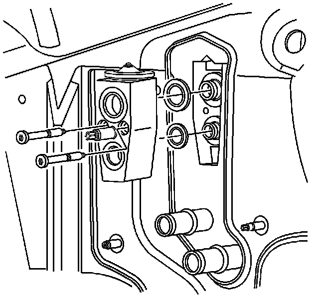 1. Install new seal washers to the evaporator core fittings. Refer to Sealing Washer Replacement (Sealing Washer Replacement) .