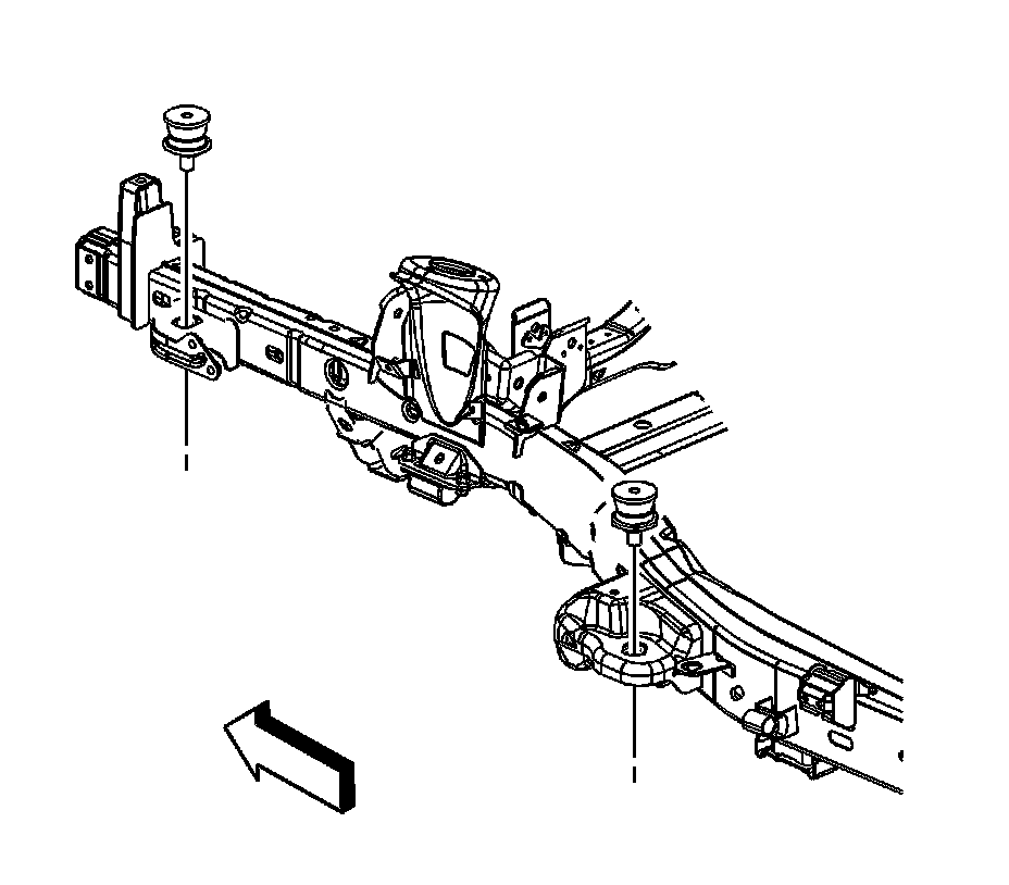 3. Remove the bolt/cushion assembly at the number 1 and the number 2 body mount.