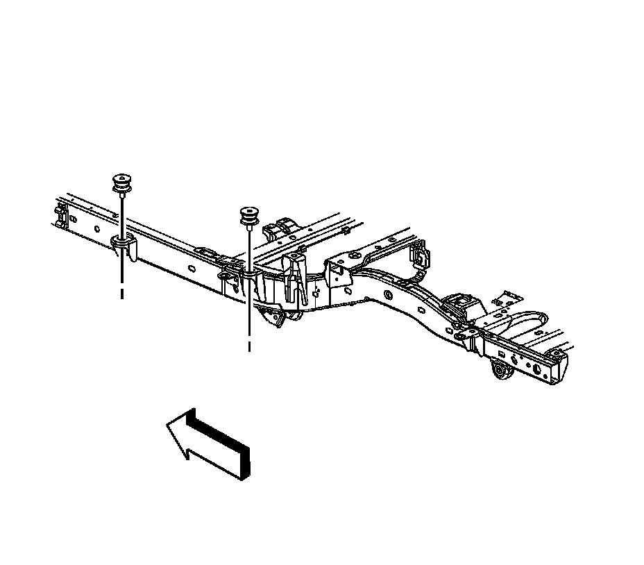 5. Remove the bolt/cushion assembly at the number 3 and the number 4 body mount, long wheel base vehicles.