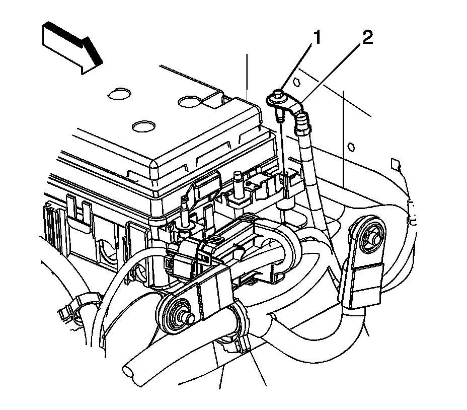 5. Remove the positive battery cable terminal (2) from the junction block.