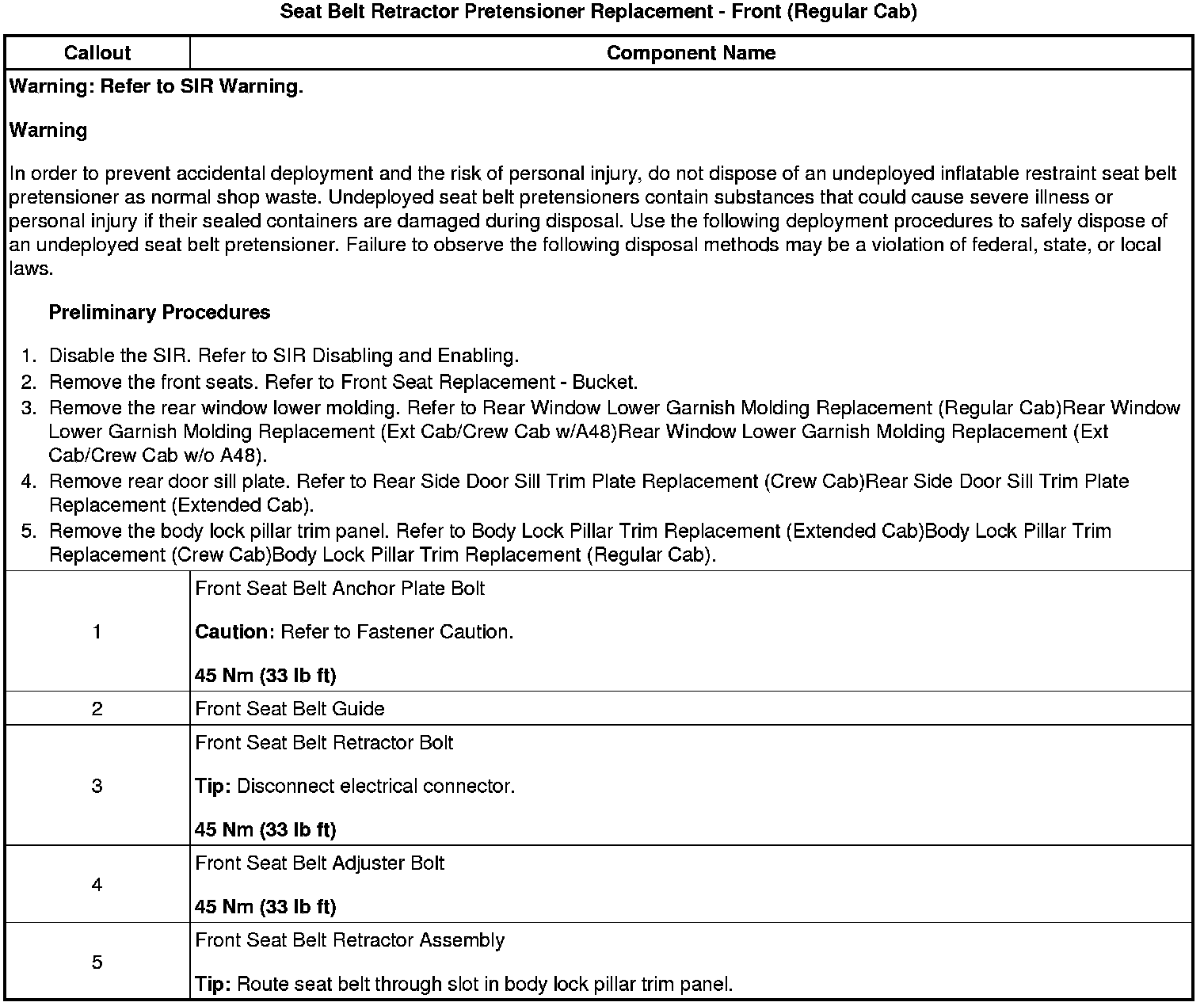 Seat Belt Retractor Pretensioner Replacement - Front (Regular Cab)