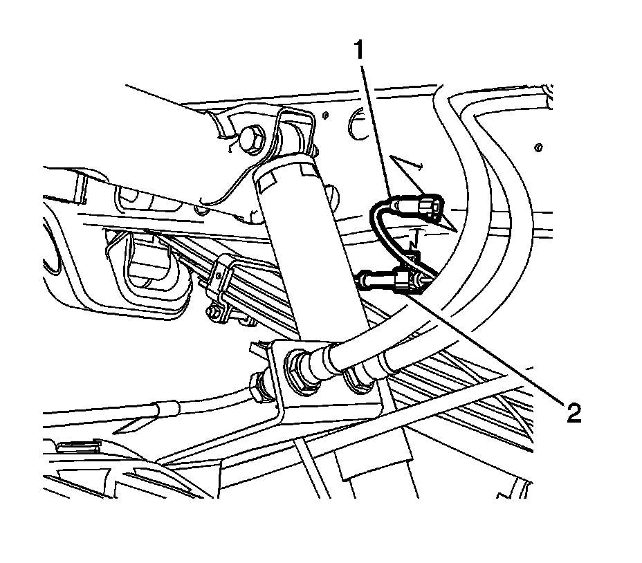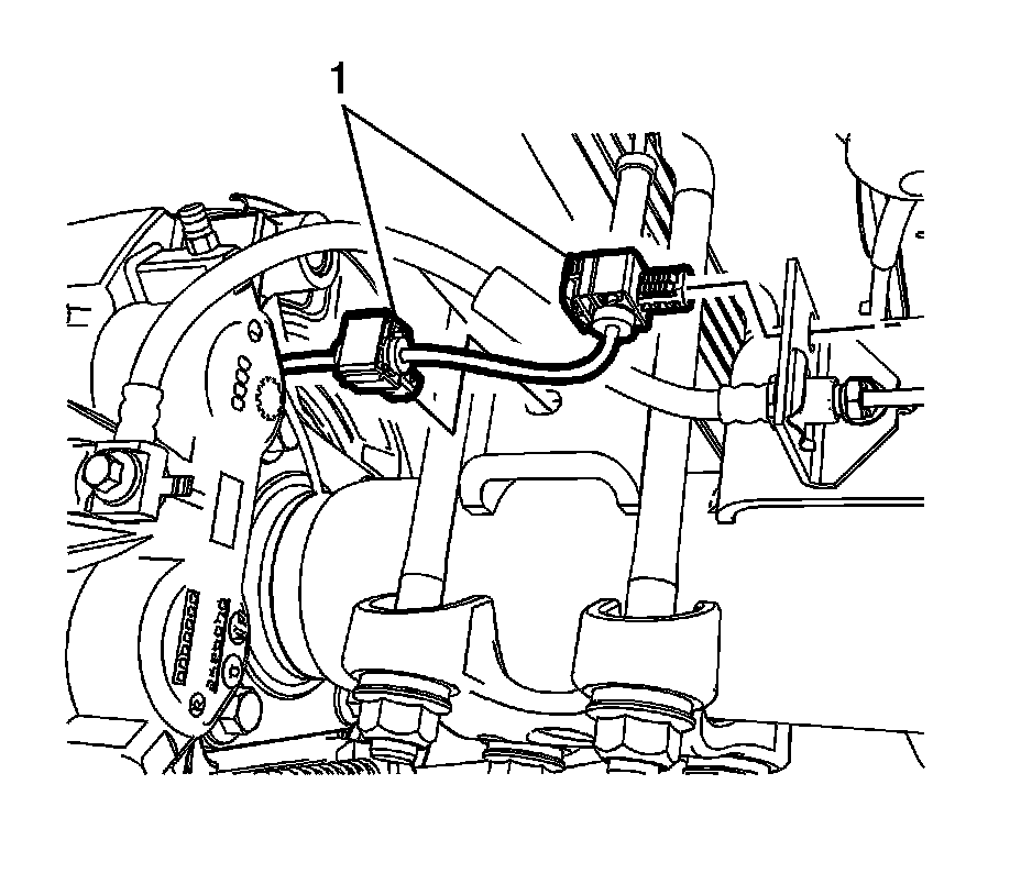 2. Disconnect the wheel speed sensor electrical connector (1) and release the connector from the frame.