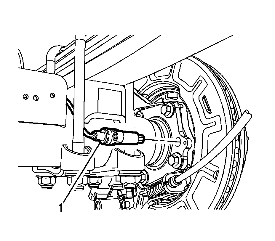 2. Install the wheel speed sensor bolt (1) and tighten to 9 Nm (80 lb in).