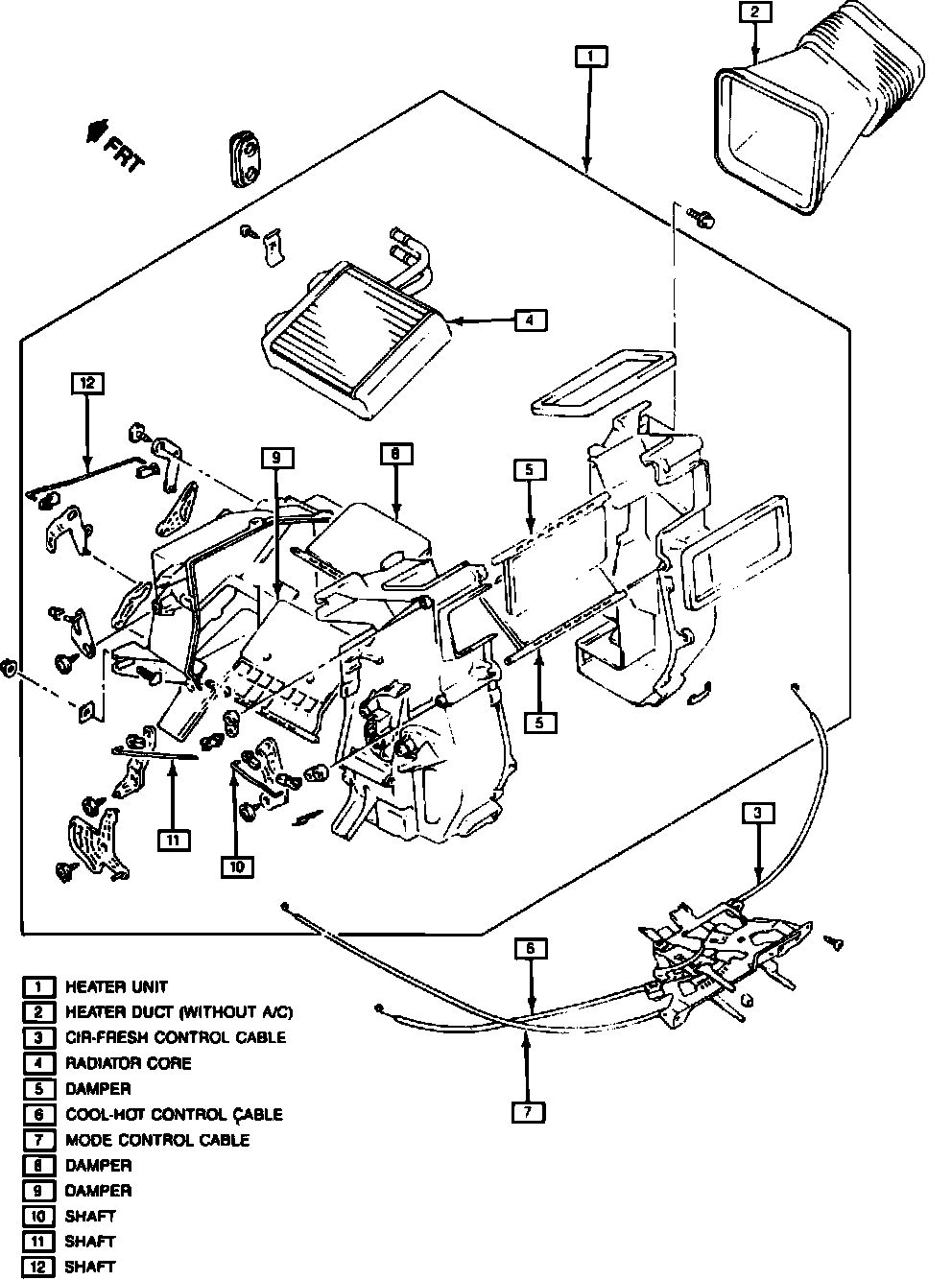 6. Disconnect all electrical connections and mode and temperature control cables from heater unit, Fig. 7.