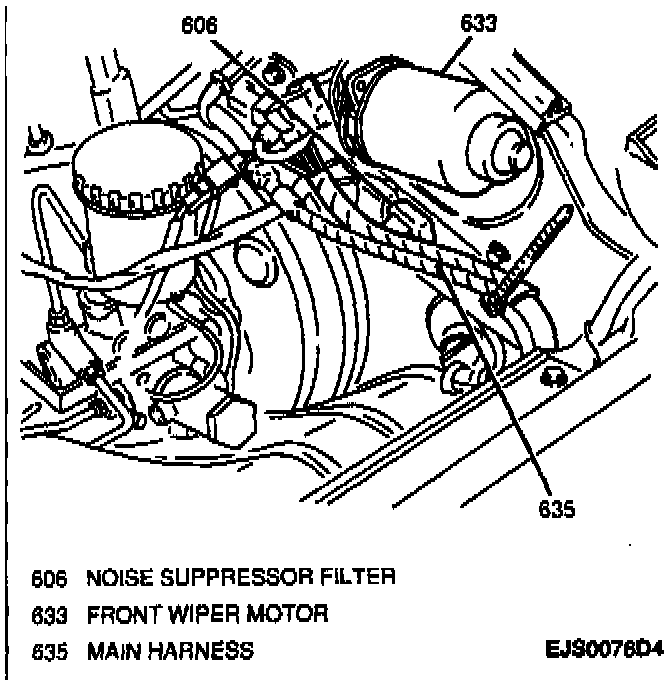 2. Noise suppressor filter to main harness; secure with electrical tape.