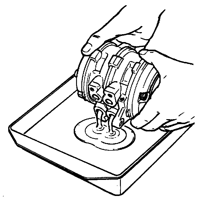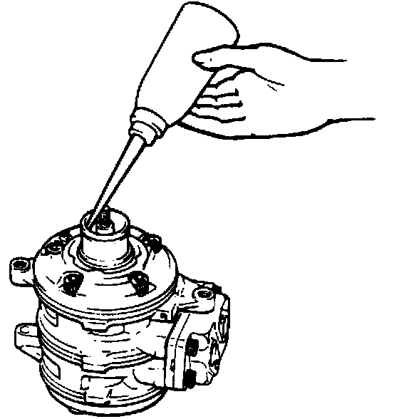 2. When replacing the compressor with a new one, drain 40 cc (2.4 cu. in.) of compressor oil from the new compressor, because it contains approximately 80 cc (2.8 cu. in.) of compressor oil.