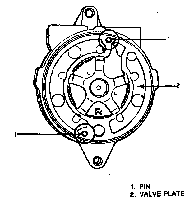 c. Install the suction need valve, rear valve plate, and discharge reed valve on to rear cylinder top. For the installation locations, refer to the drawing.
