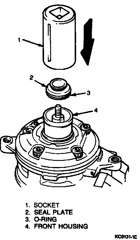 b. Lubricate new O-ring with compressor oil. Install the O-ring in the front cylinder.
