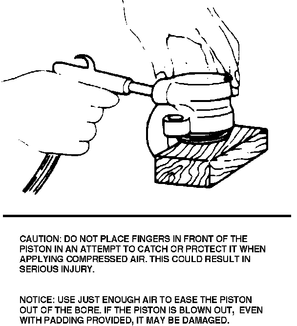 4. Using a small piece of wood or plastic, remove piston seal from bore. Do not use a metal tool of any kind to remove seal as it may damage bore.