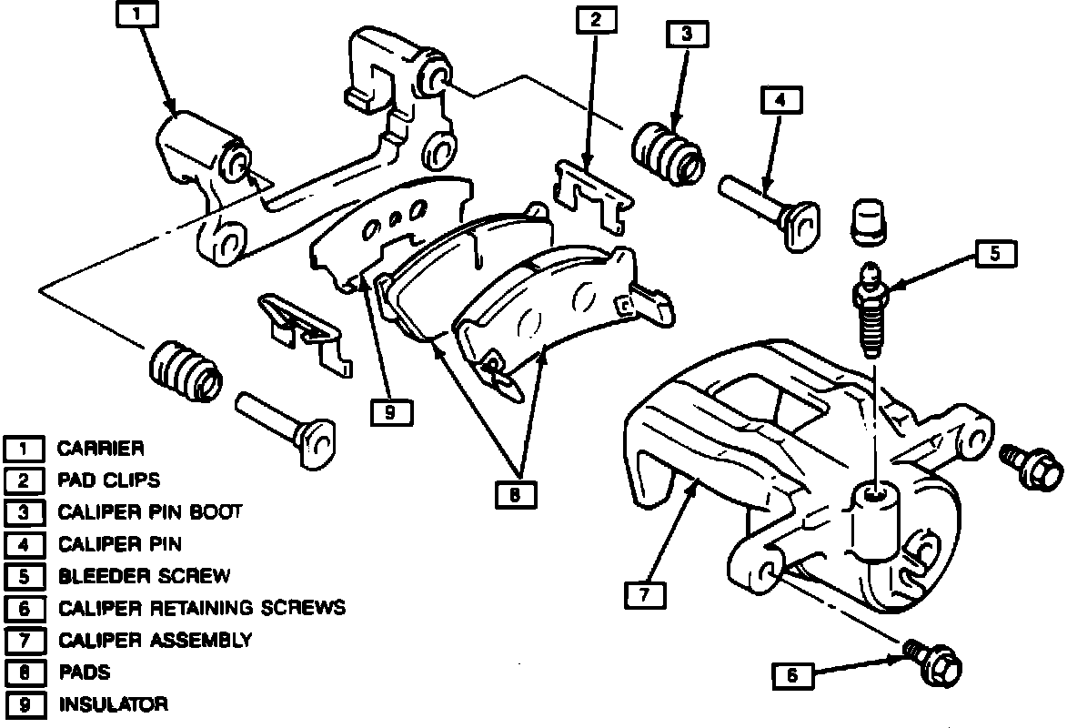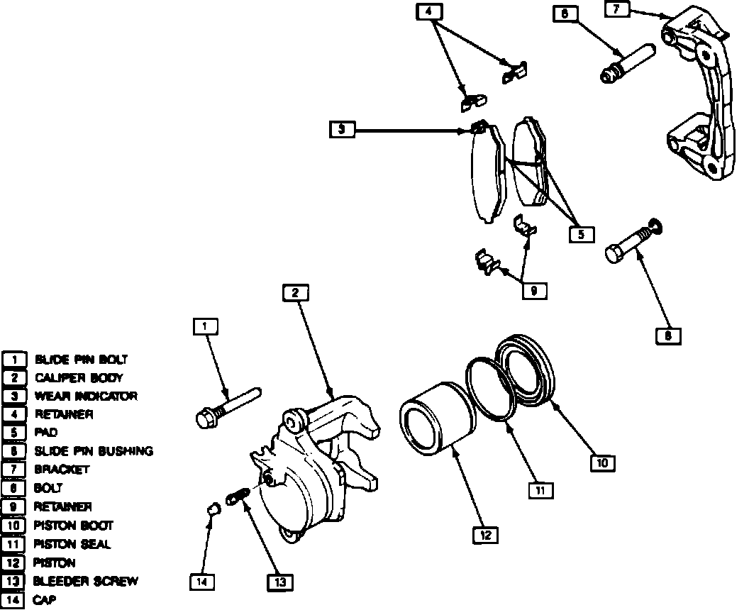 Fig. 2 Exploded View Of Disc Brake Caliper Assembly. Metro Convertible.: