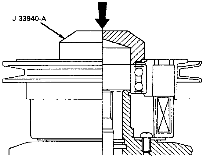 3. Install the pulley assembly using installer (J 33940-A), then install the cover and the snap ring.