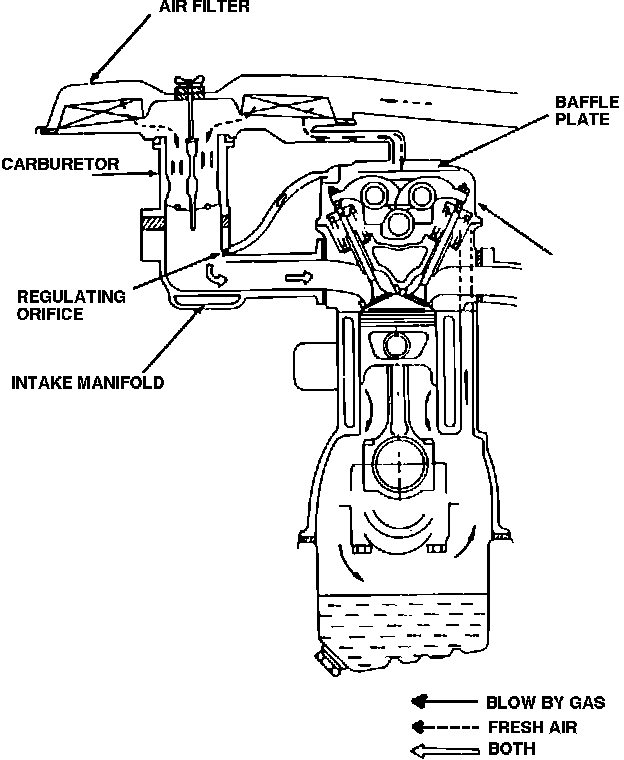 4. With a new regulating orifice installed, if the paper is not drawn against the crankcase inlet air cleaner opening with considerable force, it will be necessary to clean the passage in the intake manifold. Also, the [1][2]PCV hose will have to be cleaned or replaced.
