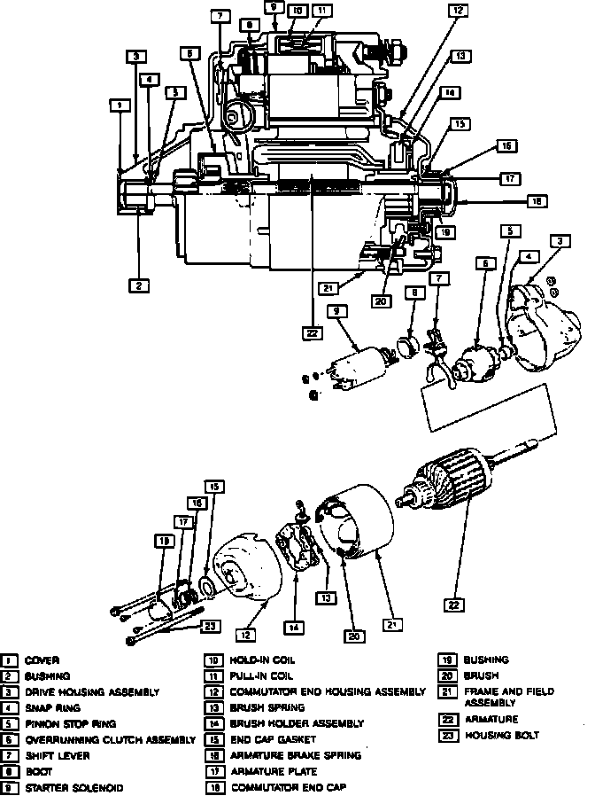 Fig. 1 Exploded View Of Starter Motor. Conventional w/Manual Trans: