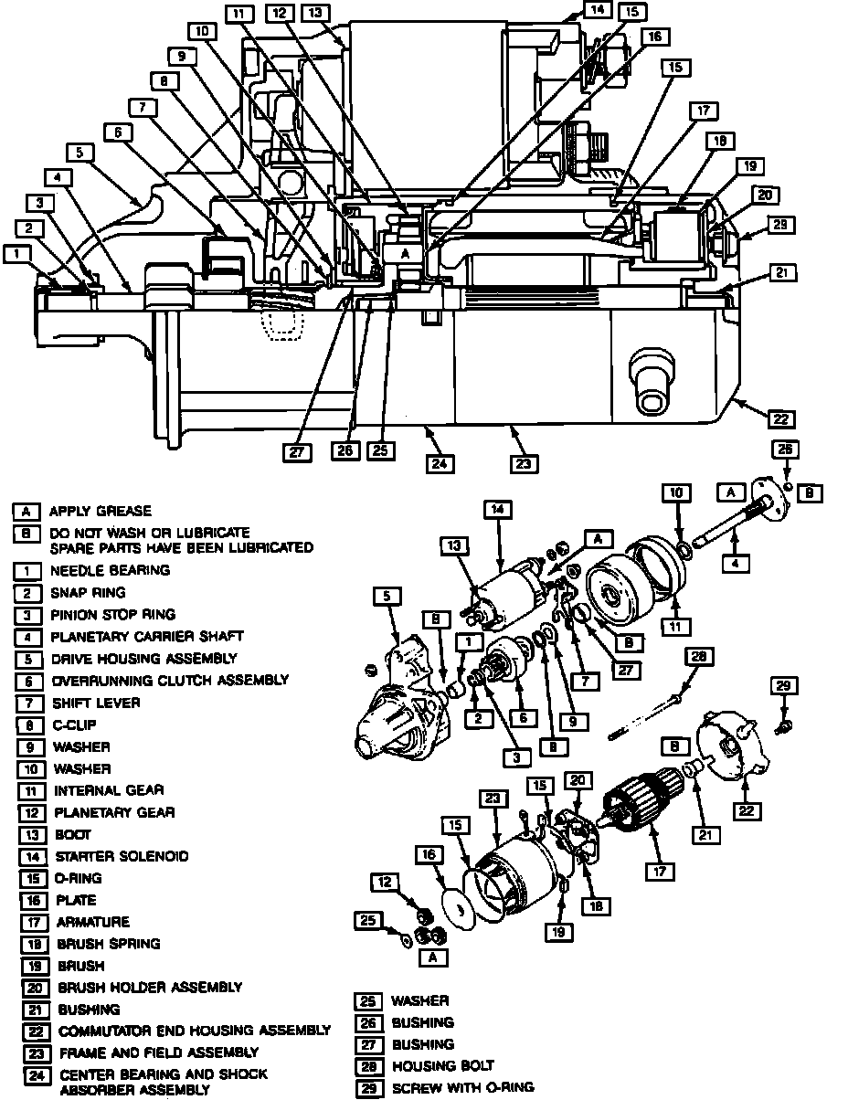 Fig. 2 Exploded View Of Starter Motor. Reduction w/Automatic Trans: