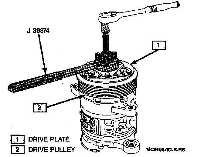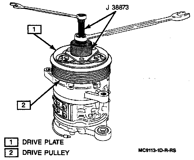 8. Drive plate to drive pulley using the J 38873 drive pulley installer.