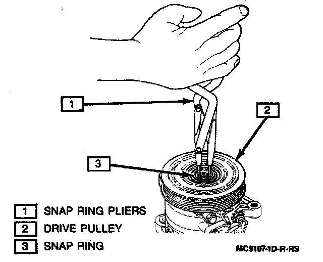 NOTICE: Make sure that the drive plate splines are properly aligned with the compressor drive shaft before drawing drive plate onto shaft.
