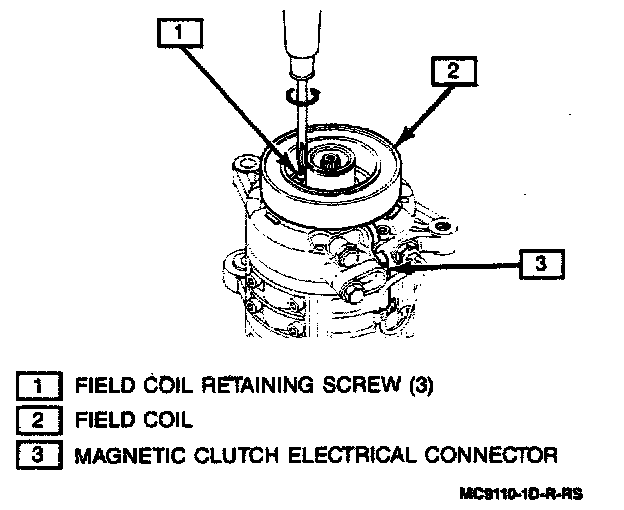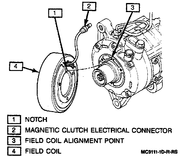 ^ Field coil for cracked insulation ora loose connection. If the field coil is damaged, replace the entire magnetic clutch assembly.
