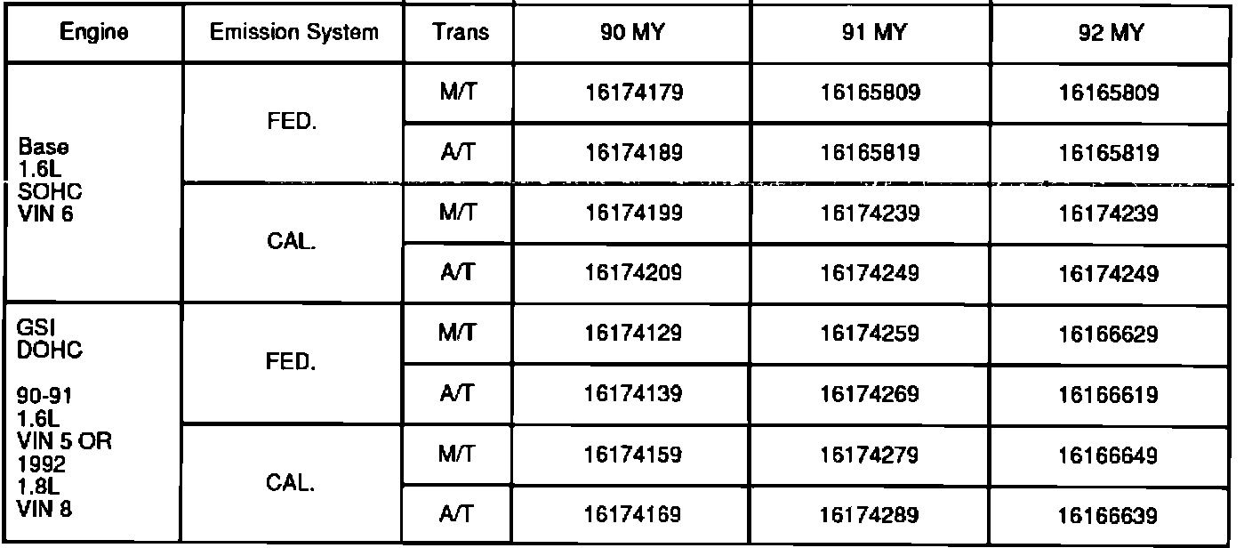 Some automatic transmission equipped vehicles already have the DOHC engine (VIN Code 5), some late build 1991 base models with SOHC engine (VIN Code 6) and all 1992 base models with the SOHC engine (VIN Code 6). No 1990-92 GEO Storms with manual transmissions were produced with the improved I.A.C. feature.