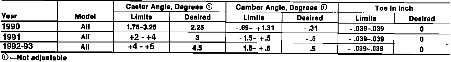Front Wheel Alignment Specifications: