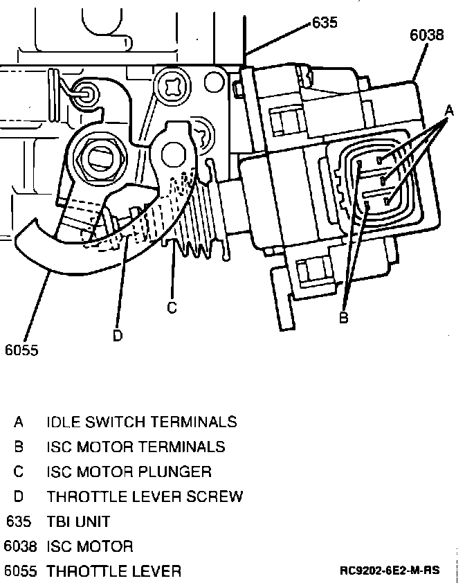 NOTE: The throttle level screw are preset at the factory. The ISC motor must not be removed from the TBI unit or disassembled otherwise damage to the ISC motor and /or throttle may occur.