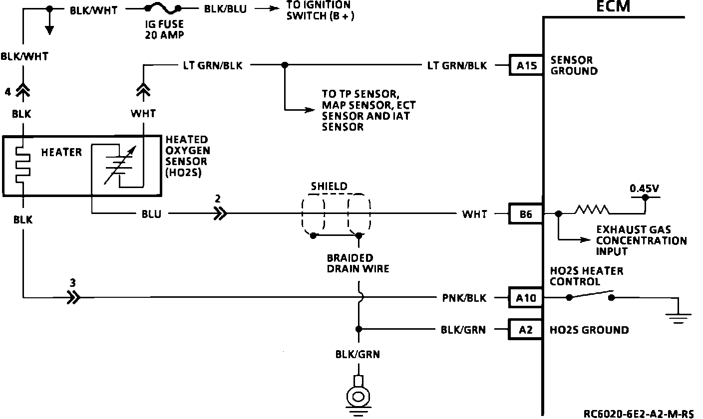 The heated oxygen sensor (H02S), produces a voltage that varies between .1 volt and .9 volt under normal operating conditions. The ECM monitors this voltage and determines if the exhaust is lean or rich. If the voltage input at the ECM is about .1 volt, the exhaust is lean, and if the voltage input is about .9 volt, the exhaust is rich. The (H02S) has a built-in heater that keeps the (H02S) at normal operating temperature while the engine is running. If the (H02S) is below 360°C (600°F) it is like an open circuit and will not produce a voltage. This will cause "OPEN LOOP" operation.
