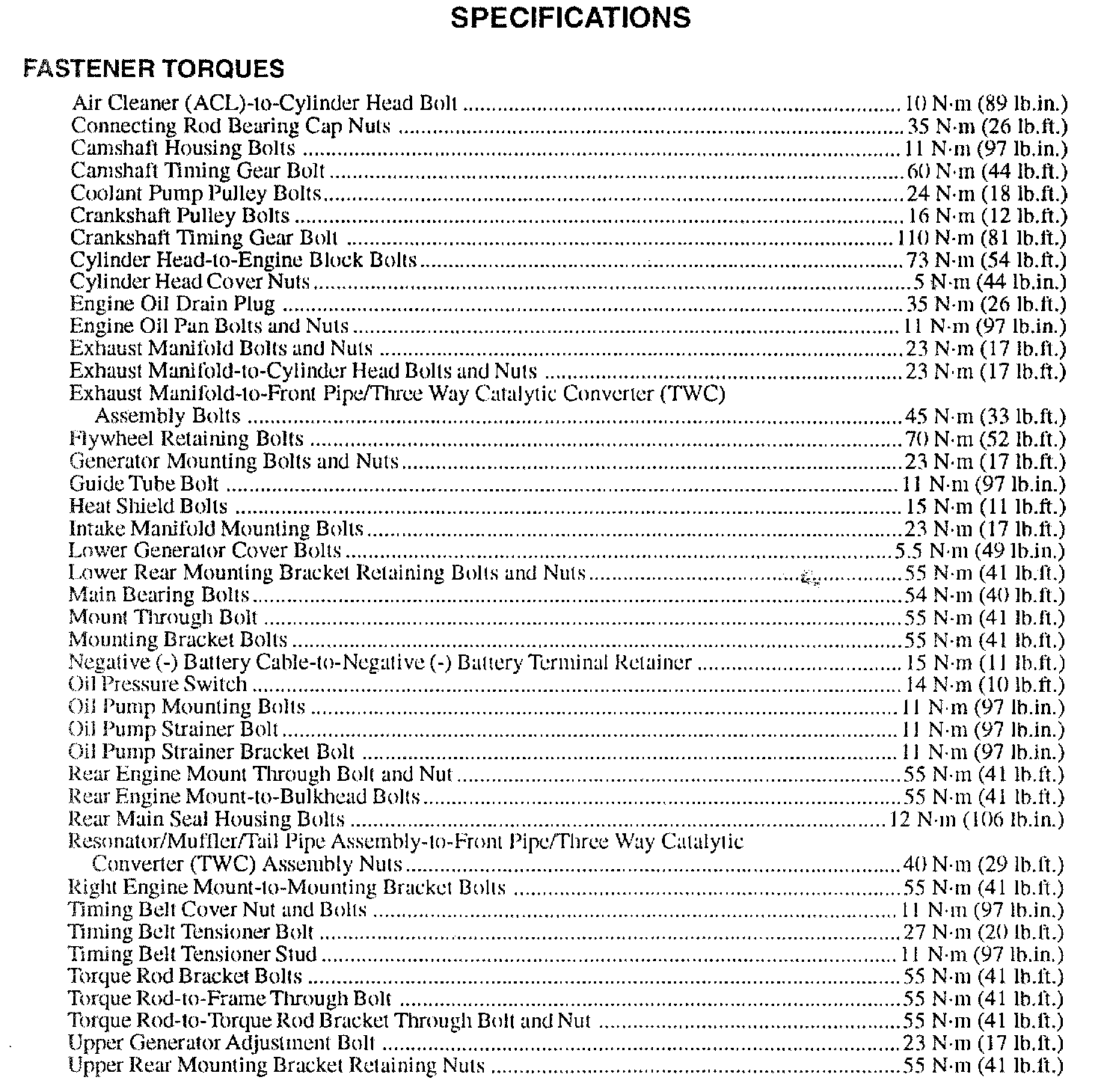 Fastener Tightening Specifications - Engine