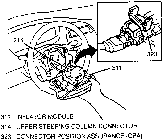 c. Remove two Torx head screws, release connector position assurance (CPA) and disconnect upper steering column connector, Fig. 28 .