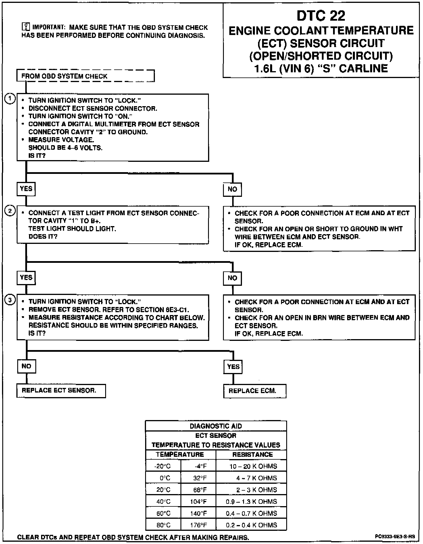 A "shifted" (mis-scaled) sensor could result in poor driveability complaints. Measure the resistance of the ECT sensor according to the diagnostic aids chart on the diagnostic chart. If DTCs 24, 31 and 41 are also set, problem is open sensor ground circuit.