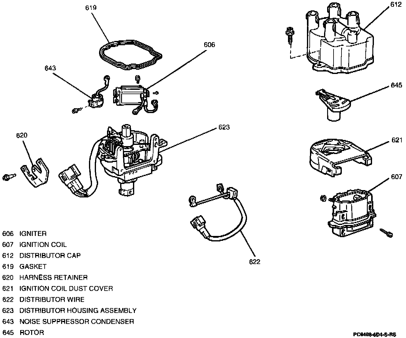 1. Noise suppressor condenser to distributor housing; secure with one screw.