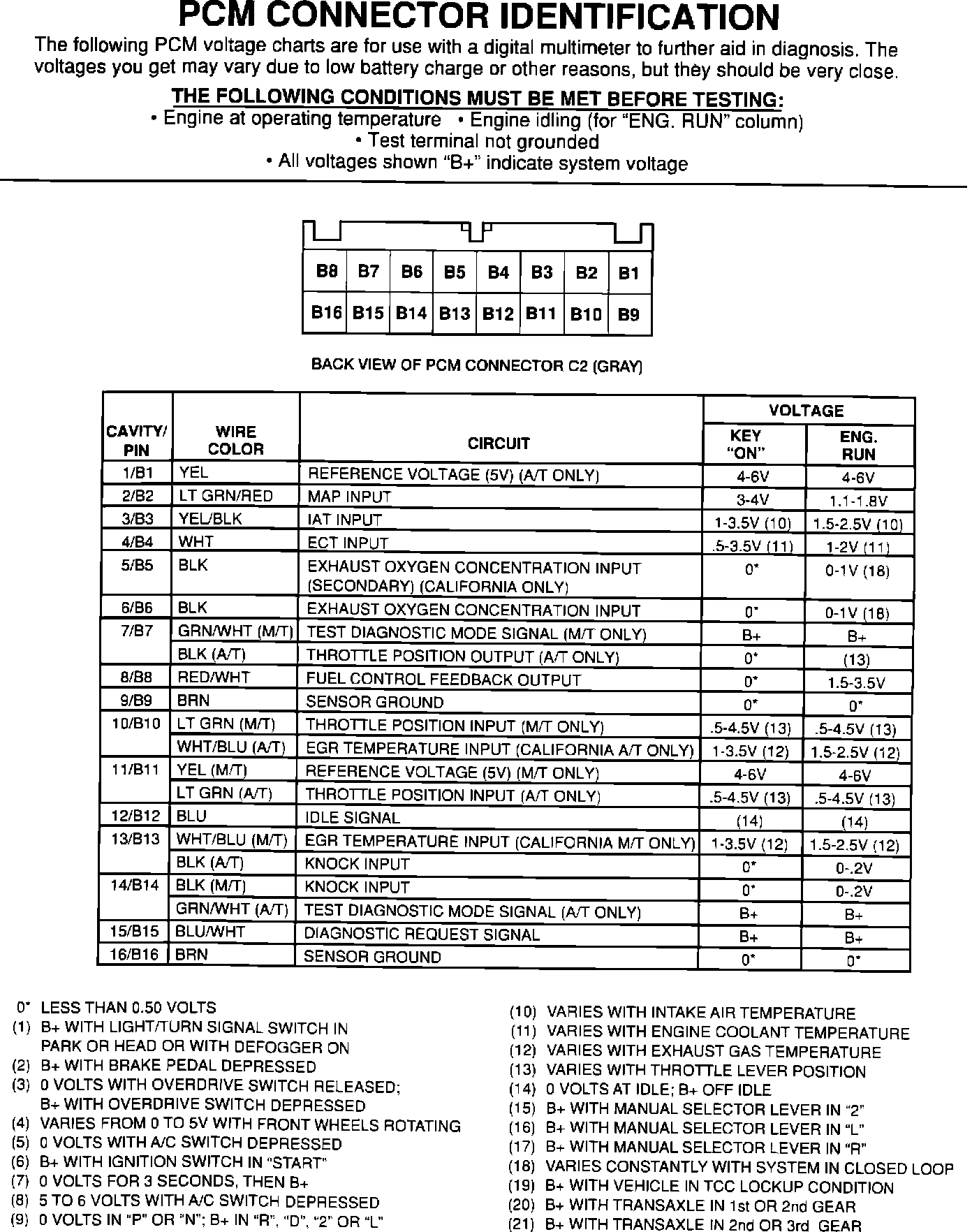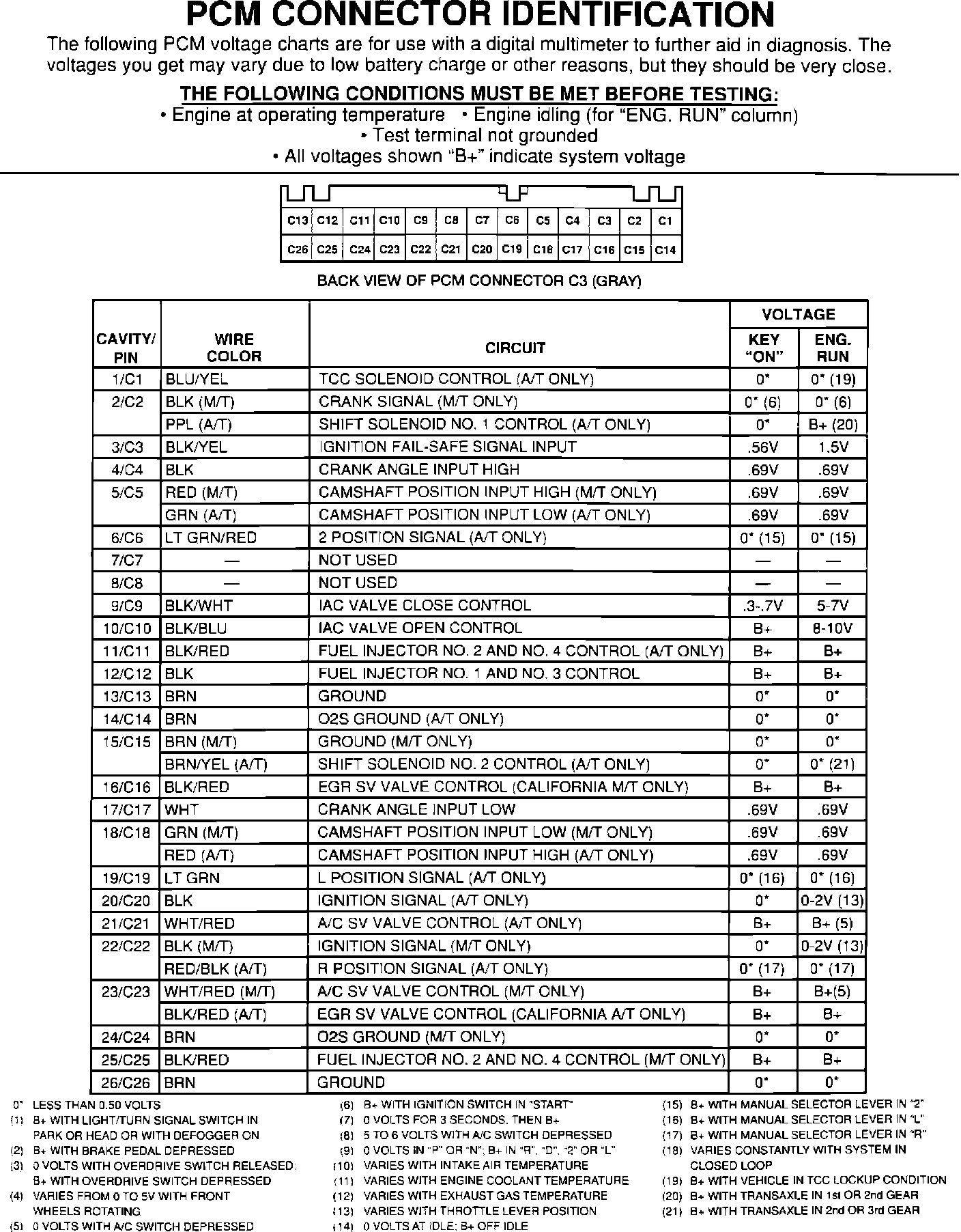 PCM Connector Pinout ID: