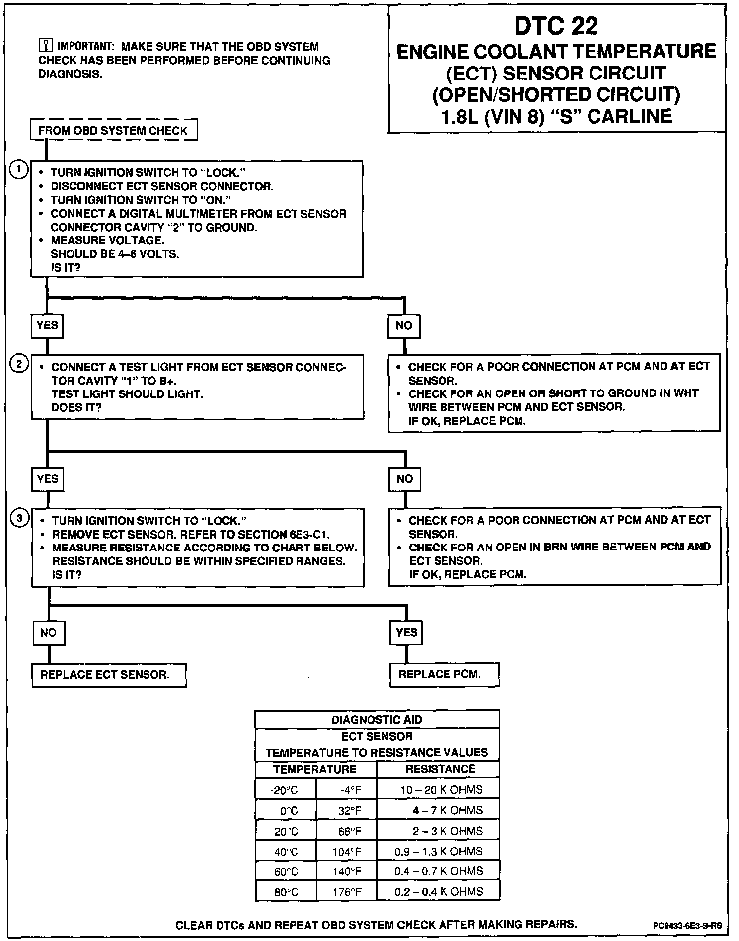 1. This checks for an open or short to ground in the WHT wire between the PCM and ECT sensor and for a faulty ECM.