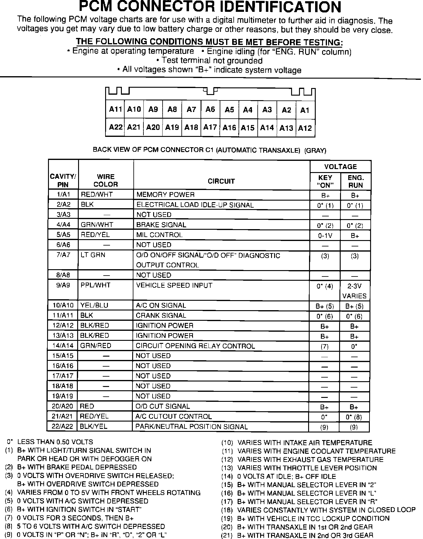 PCM Connector Pinout ID: