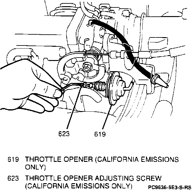NOTE: On vehicle with California Emissions perform the throttle opener adjustment below.