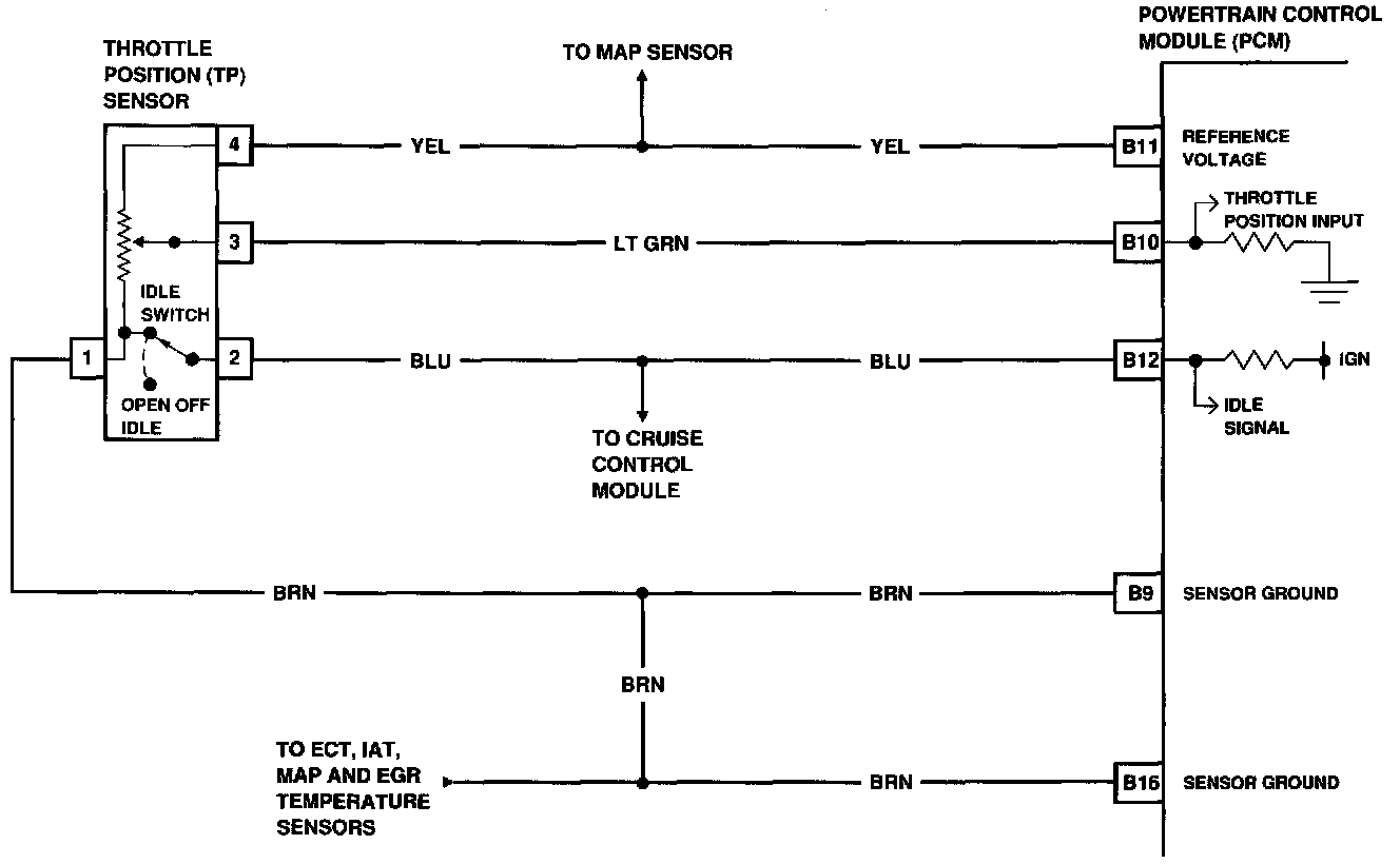2. This checks for an open in the BRN wire between the PCM and TP sensor.