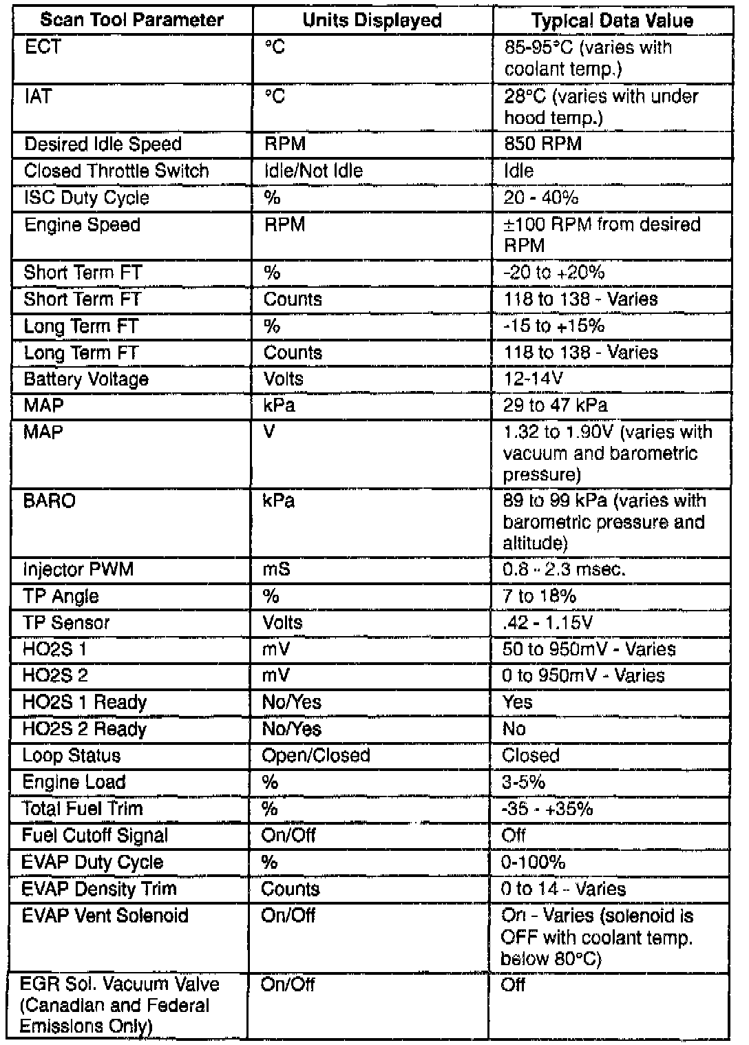 Scan Tool Data List