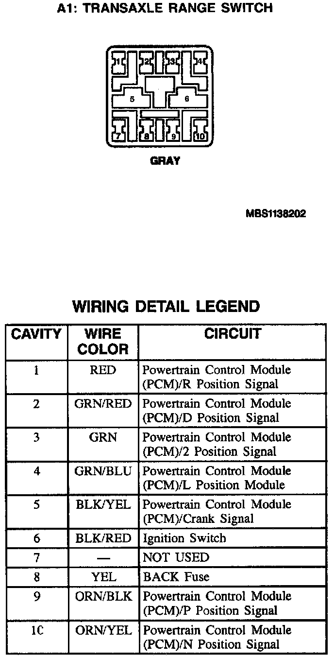 A1: Transaxle Range Switch: