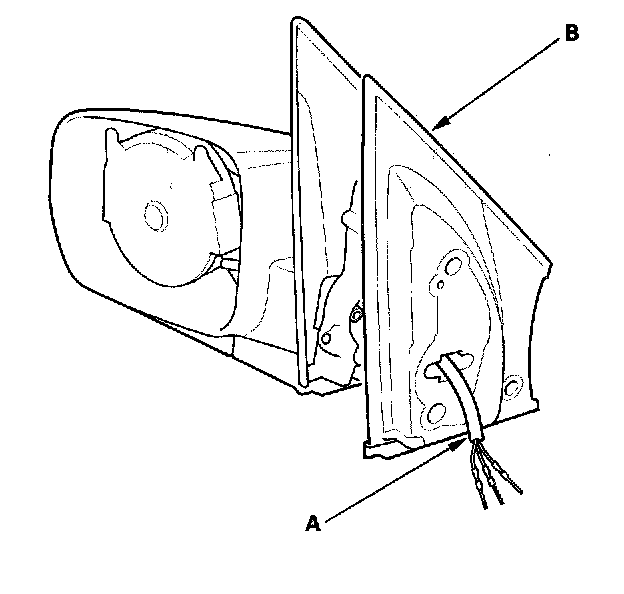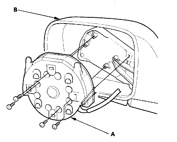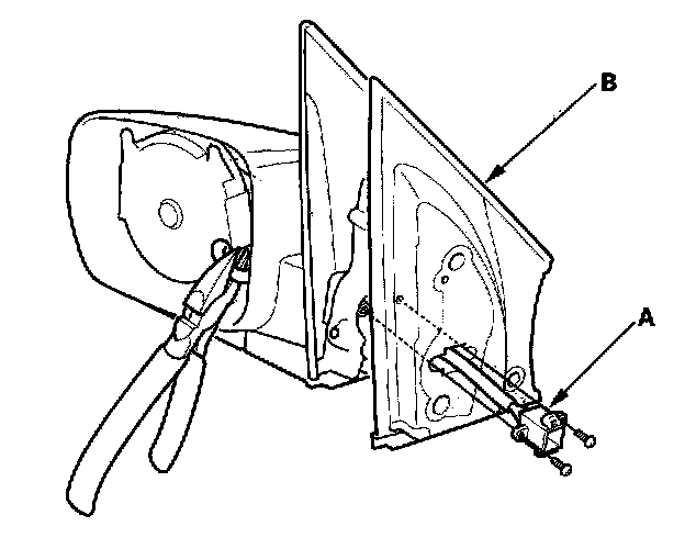 5. Remove the four Torx screws and separate the actuator (A) from the mirror housing (B).
