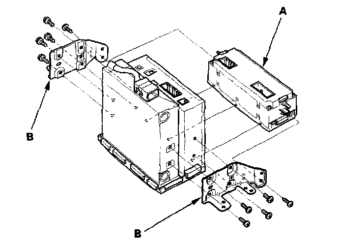 3. Remove the screws and the climate control unit (A) from the brackets (B).