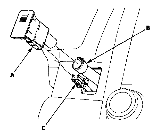 In-car Temperature Sensor Replacement1. Push out the in-car temperature sensor (A) from behind the dashboard. Remove the air hose (B) from the in-car temperature sensor, then disconnect the 2P connector (C).