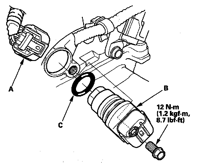 4. Install the parts in the reverse order of removal with a new O-ring (C).