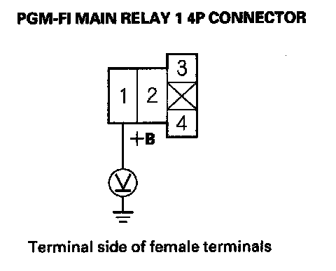 69. Measure voltage between PGM-FI main relay 1 4P connector terminal No. 1 and body ground.